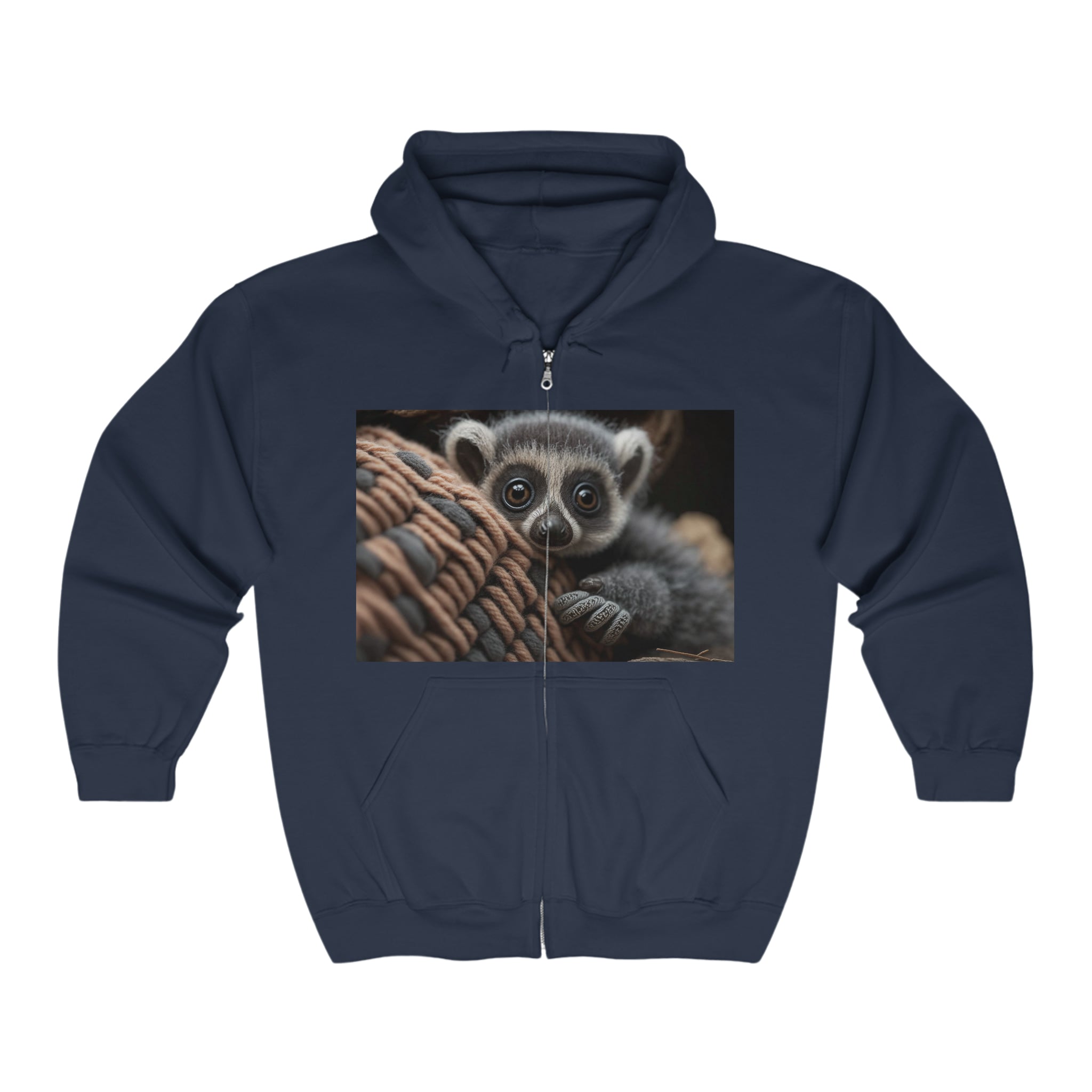 Unisex Heavy Blend™ Full Zip Hooded Sweatshirt - Baby Animals - Ringtail Lemur
